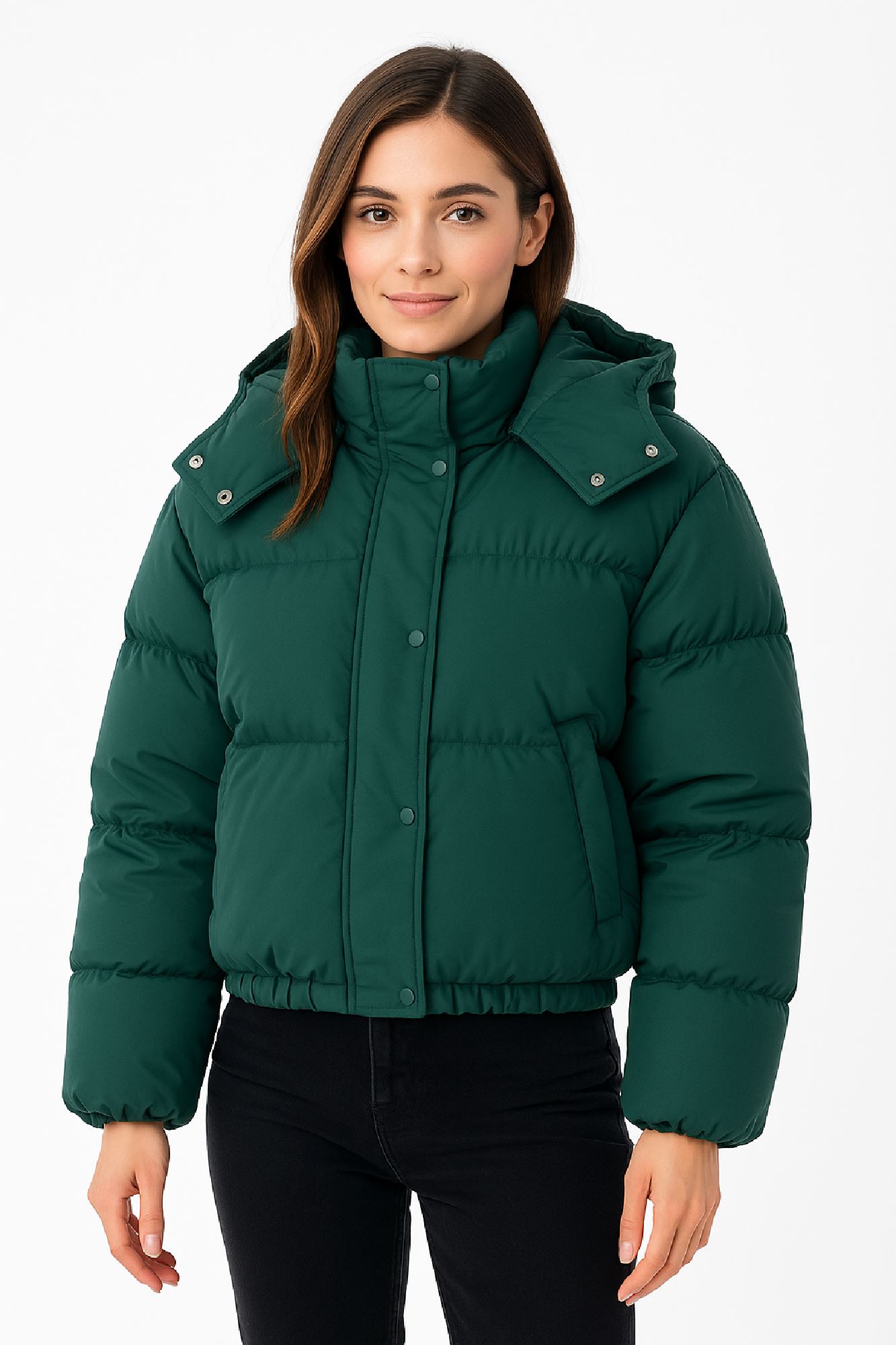 s'Κοντό Καπιτονέ Μπουφάν με Ψηλό Γιακά και Λεπτομέρειες στους Ώμους