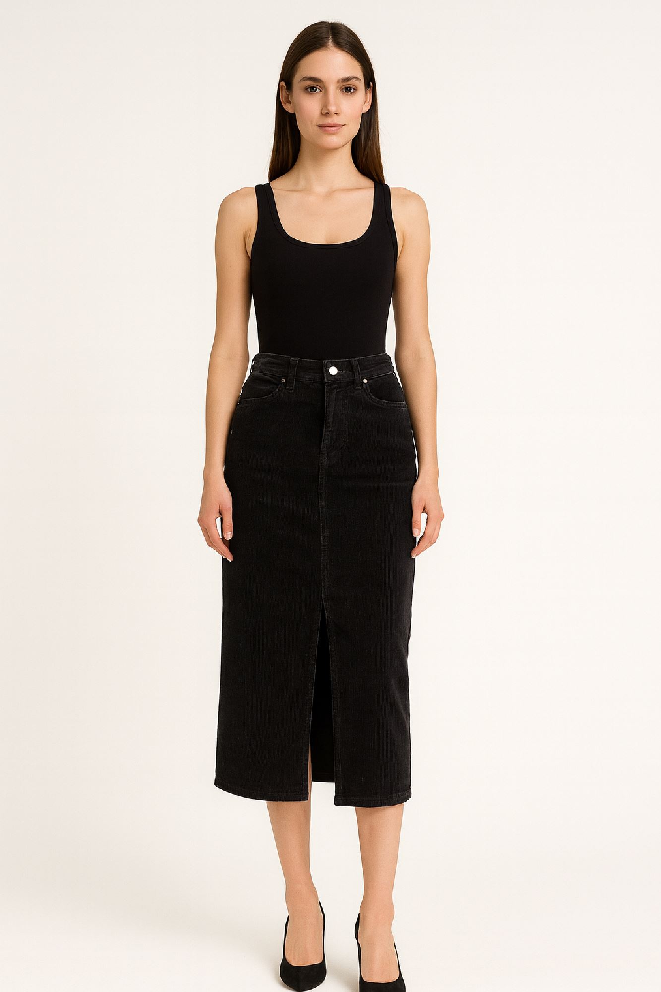Μακριά Φούστα Κοτλέ με Μπροστινό Άνοιγμα