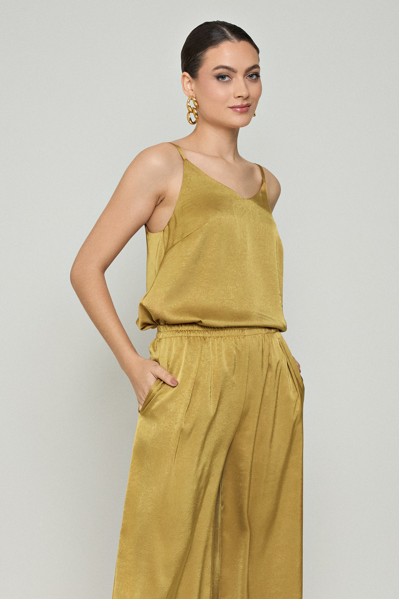 • Μπλούζα σατινέ με V λαιμόκοψη