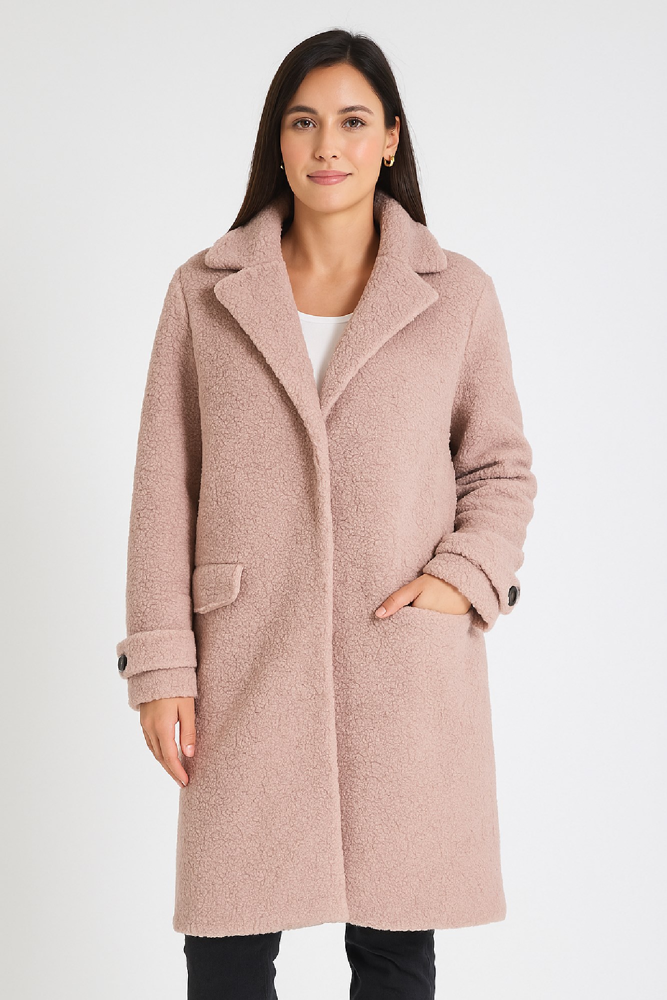 s'Παλτό με Υφή Προβατάκι και Κουμπί στη Μανσέτα
