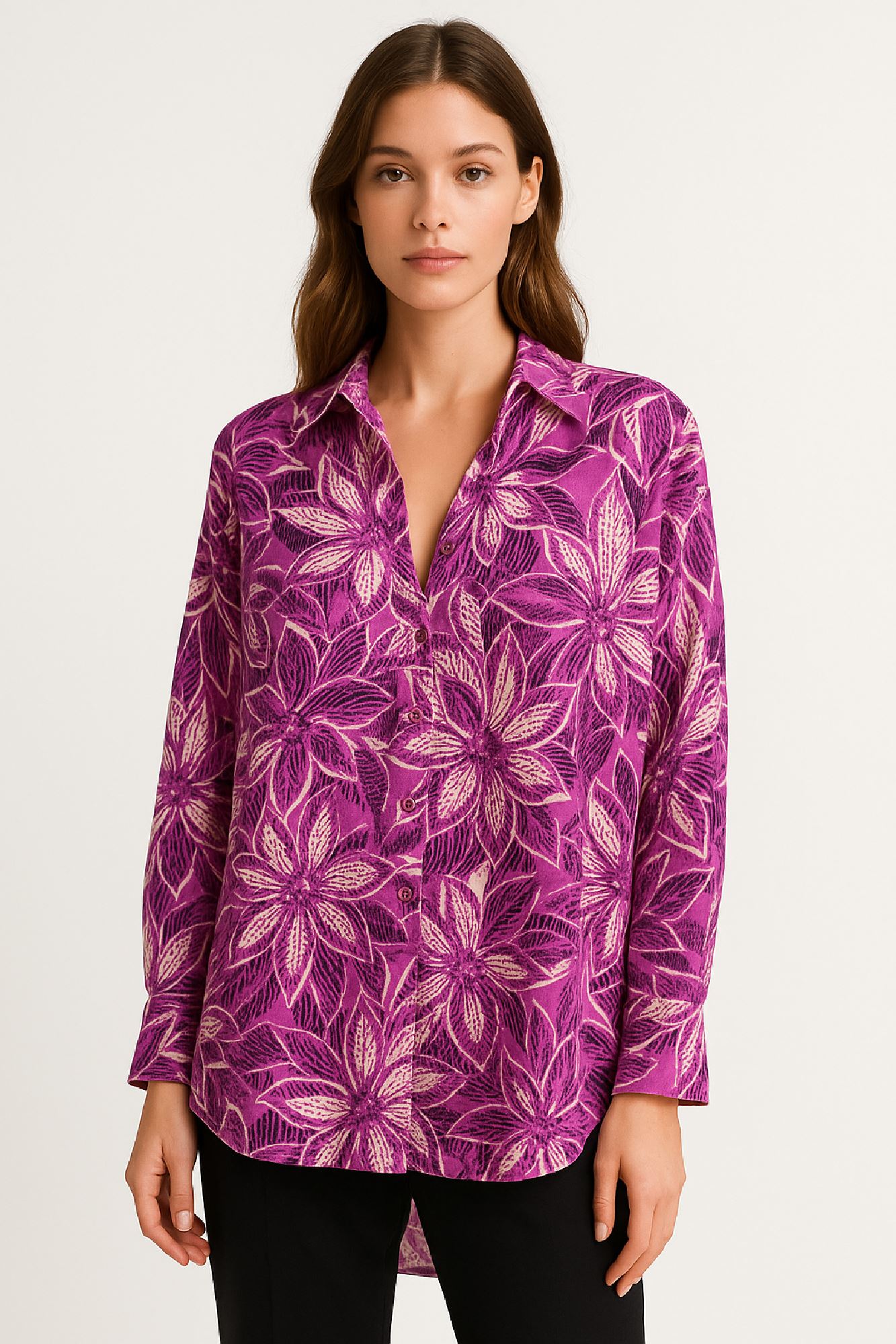 Πουκαμίσα με Έντονο Φλοράλ Σχέδιο