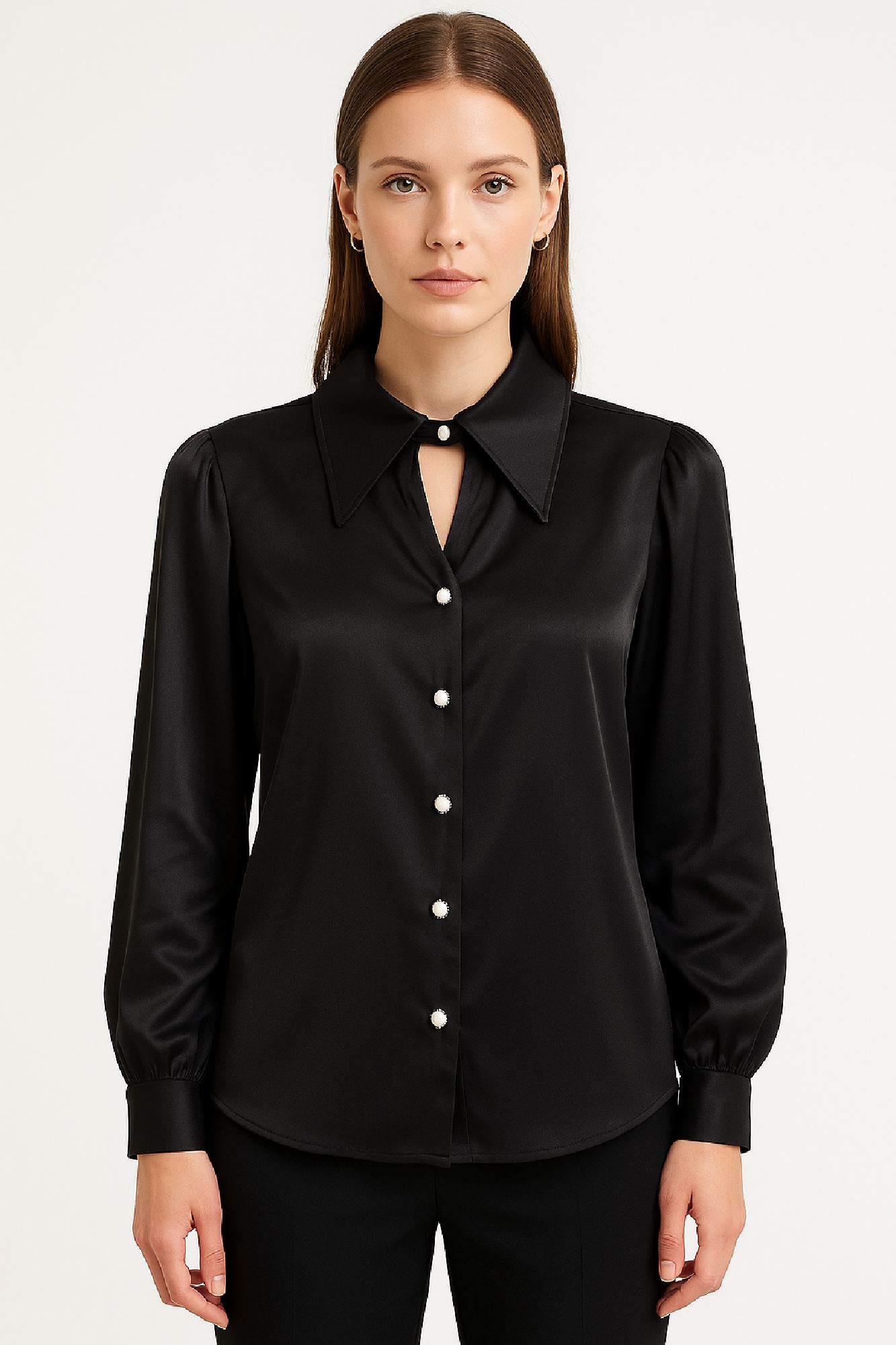 Σατέν Πουκάμισο με Διακοσμητικά Κουμπιά και Ανοιχτό Γιακά
