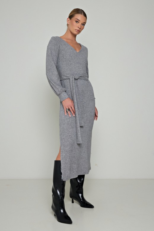 • Φόρεμα πλεκτό με V λαιμόκοψη