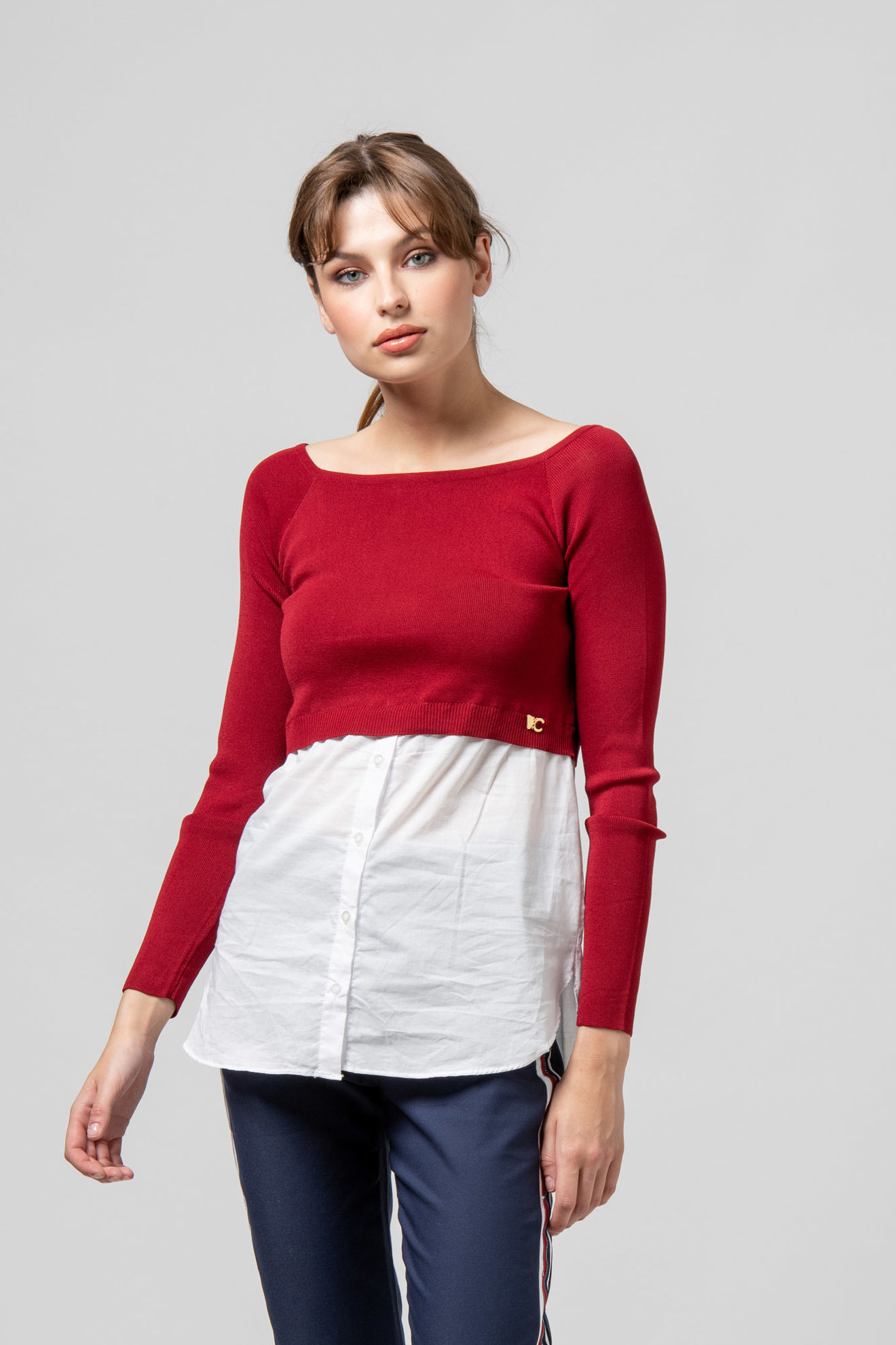 Πλεκτή μπλούζα συνδυασμός υφασμάτων