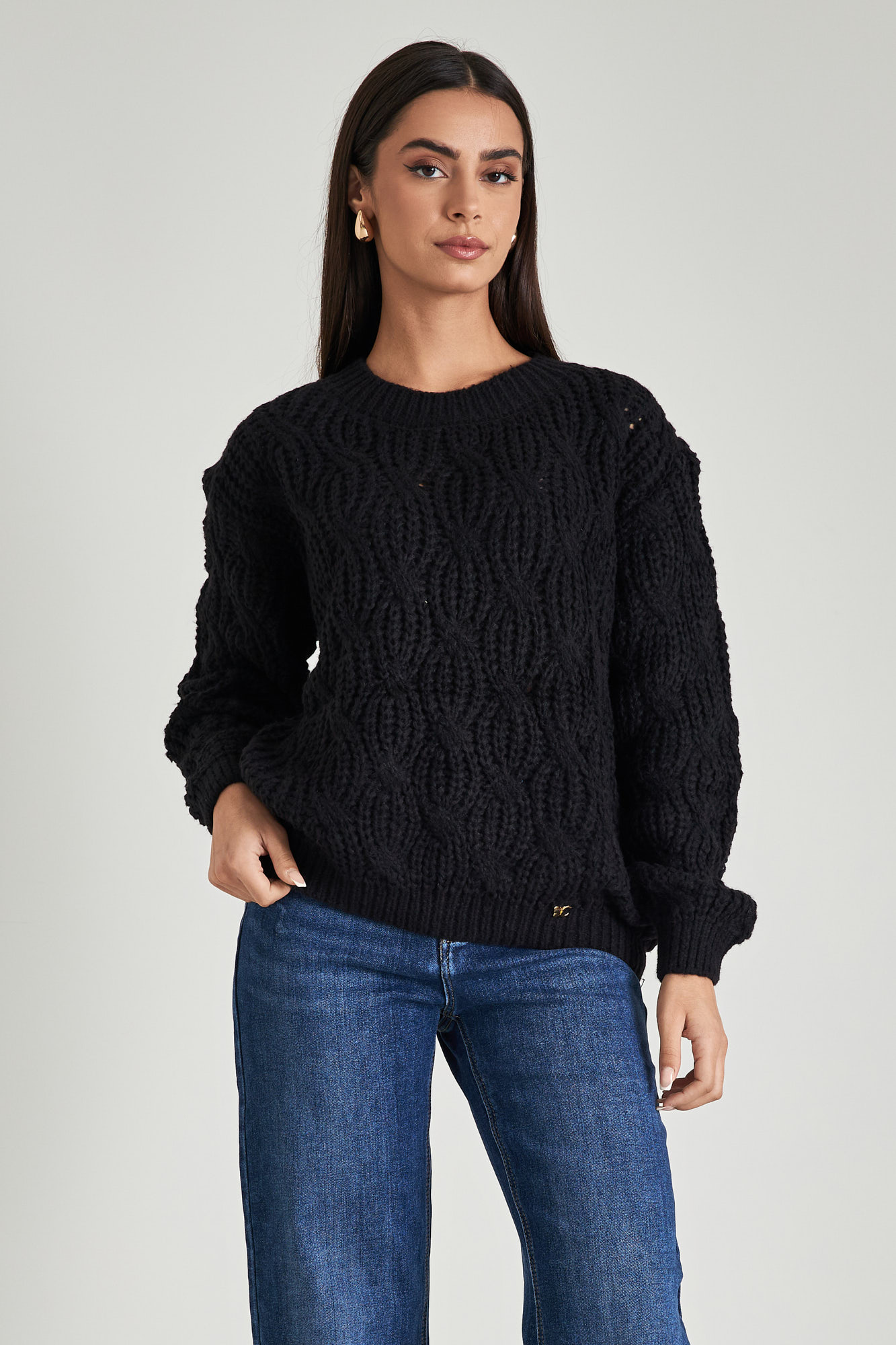 • Στρογγυλή λαιμόκοψη και μακριά μανίκια