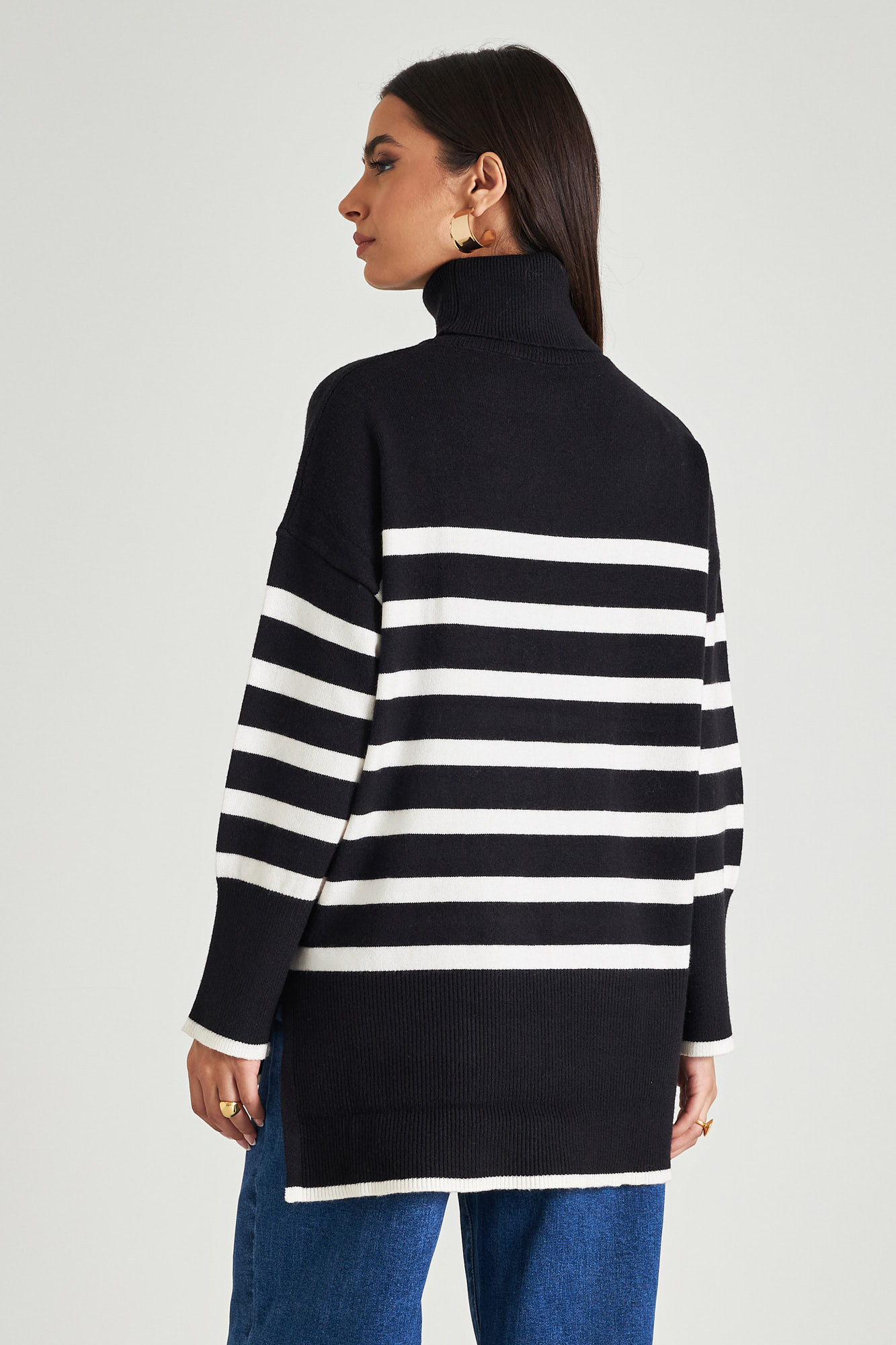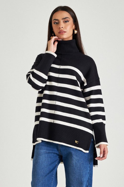High neck stripped sweater