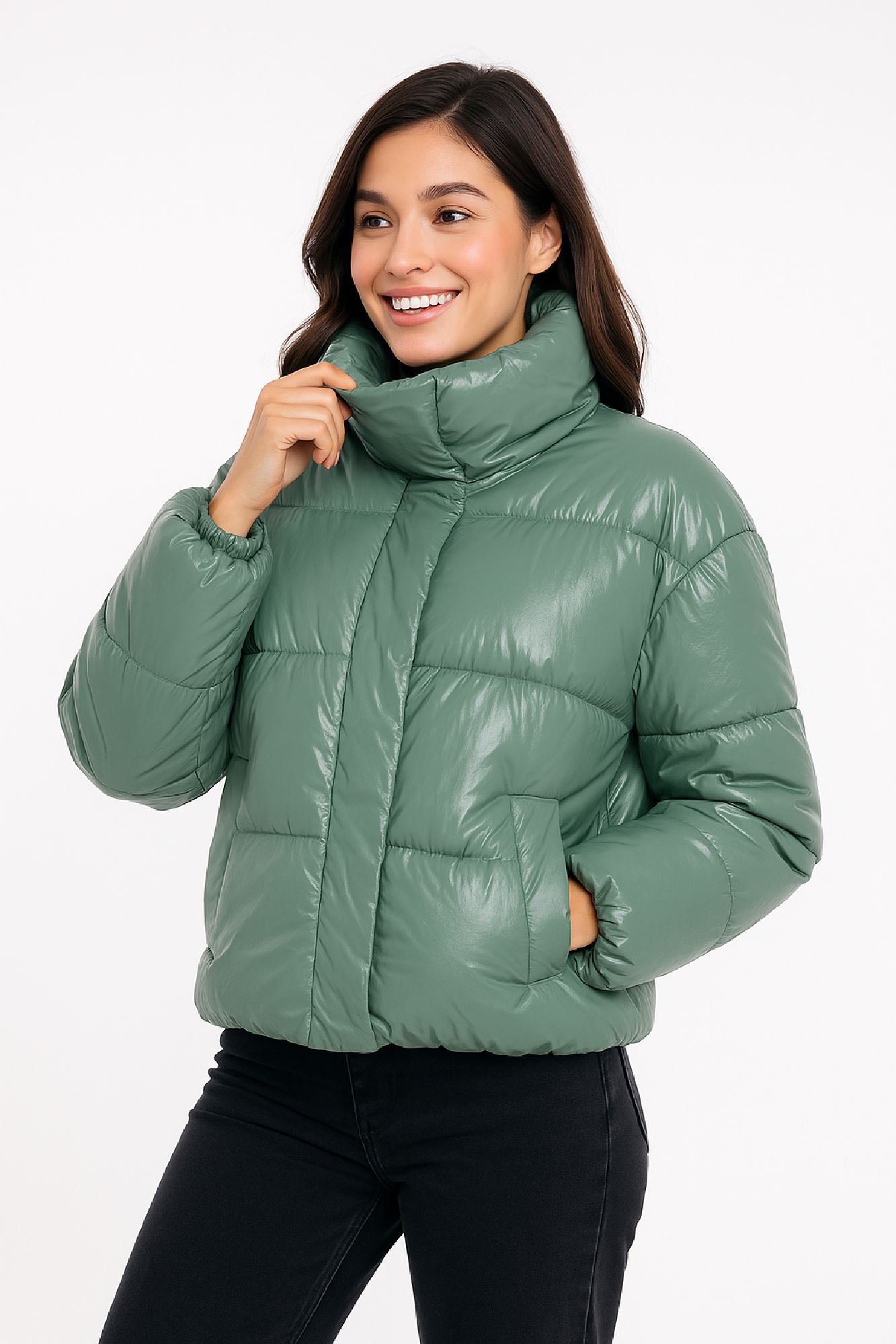 Glossy Puffer Jacket with High Neck