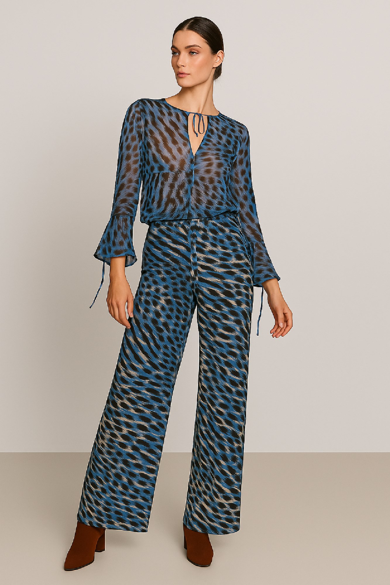 • Loose trousers made of soft satin fabric